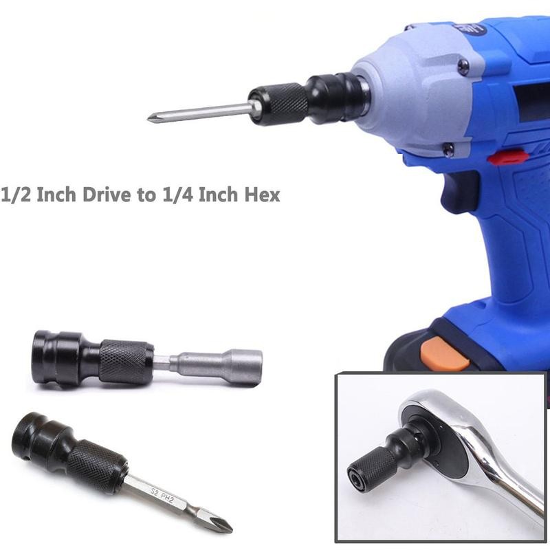 2PCS 1/2 inch Square Drive to 1/4 inch Hex Female Socket Adapter Converter Chuck Adapter for Impact Air and Electric Wrench