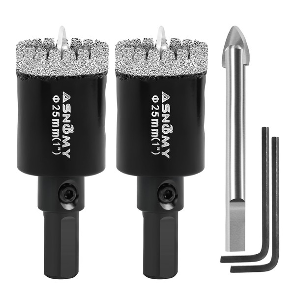 2Pcs 1 Inch Diamond Hole Saw with Pilot Drill Bit, 1" Serrated Brazing Tile Hole Saw Diamond Core Drill Bits with Guiding Bit for Ceramic Porcelain Tile Glass Stone Granite Marble
