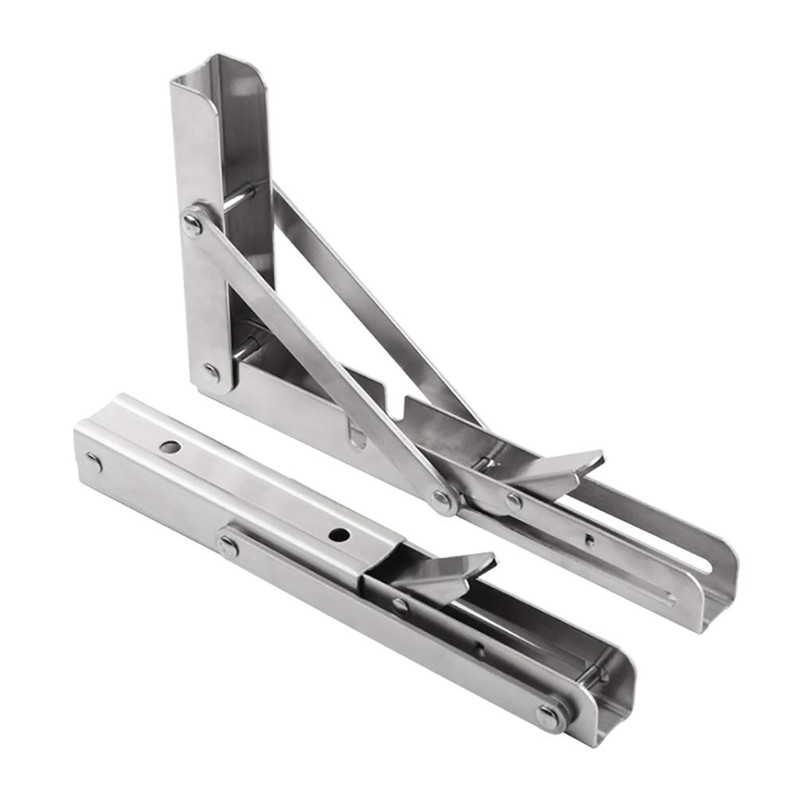 2PCS 10 Inch Length Stainless Steel Triangle Folding Angle Bracket Adjustable Wall Mounted Durable Bearing Shelf Bracket DIY Home Table Bench