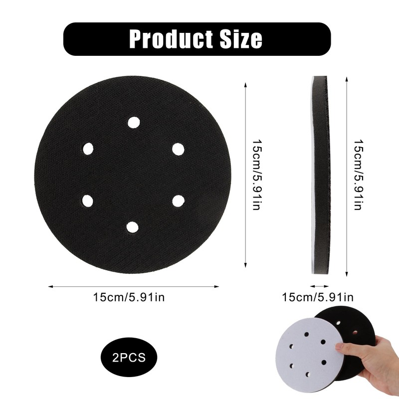 2pcs 150mm Soft Sponge Interface Pad for 6-Inch Sanding Discs, Hook and Loop Backed Cushion Pad with 6 Dust Holes, Impact-Resistant Noise Reduction Foam Buffer for Orbital Sander and Polishing Machine