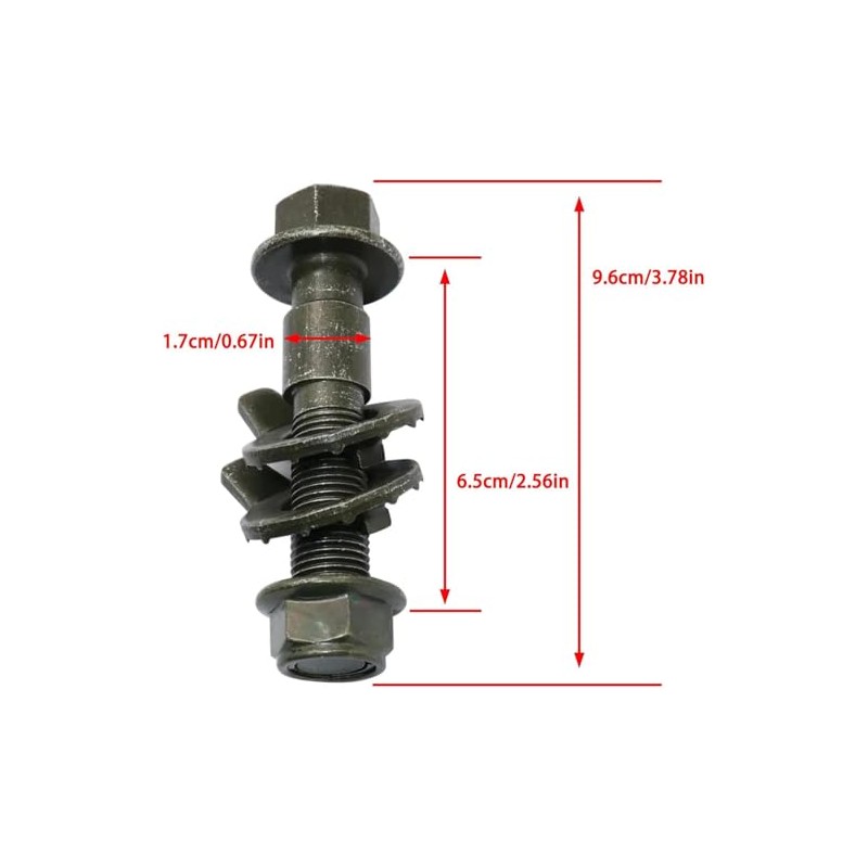 • Long-lasting Construction: Made of high-strength metal materials, precision machining and surface treatment ensure excellent durability and corrosion resistance of eccentric screws. This robust design can withstand various stresses in the operation of the vehicle, ensuring long-term reliable use