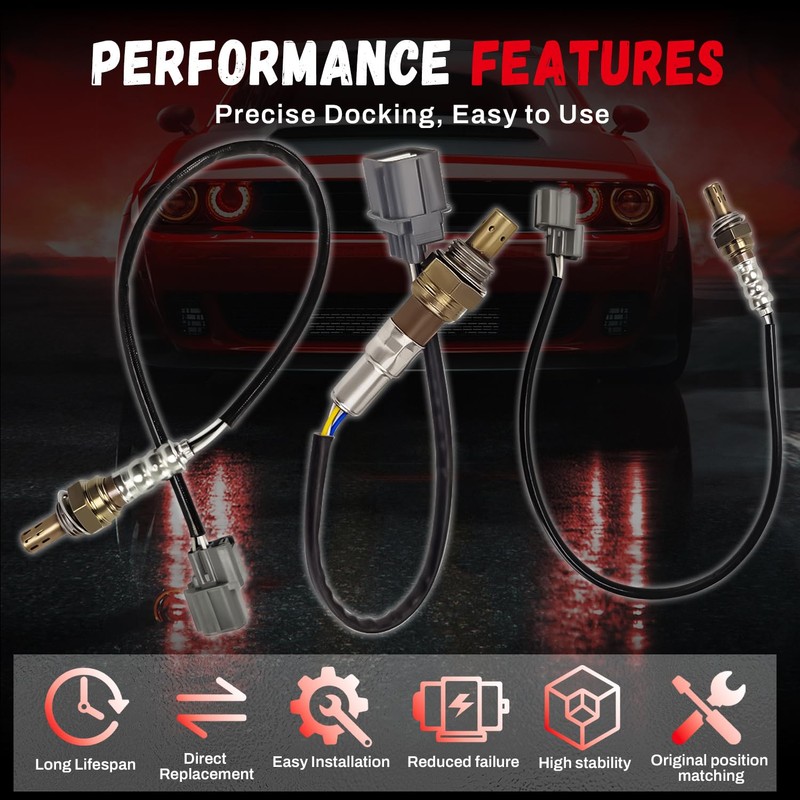 - [Car O2 Sensor Function] O2 sensor monitors the mixed gas, ensuring that the engine is in an optimal combustion state of the mixed gas; The o2 sensor can control the automobile exhaust emission and improve the automobile engine fuel combustion quality. Improves engine efficiency performance and fuel economy and reduces emissions of carbon dioxide and other harmful gases. If your car's sensors are malfunctioning, simply replace to replace our oxygen sensors.