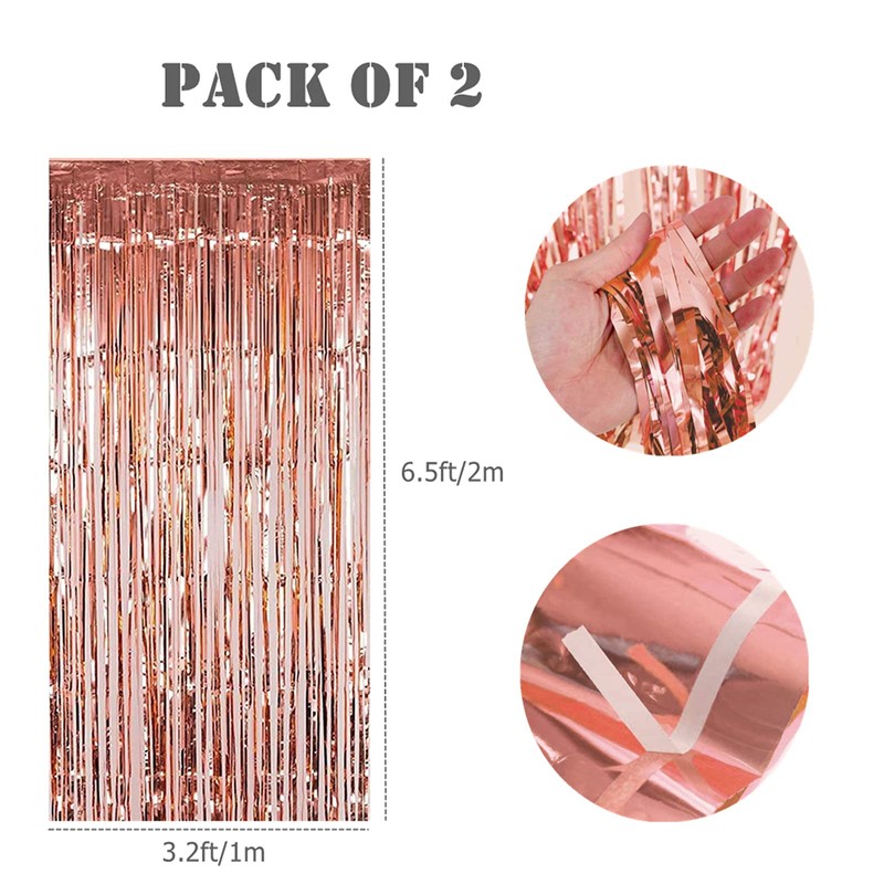 - Package Include: Rose Gold Tinsel Foil Fringes Curtains, 2Packs/Set, each pack curtain size is 3.2ft x 6.5ft, enough length for decorating your party