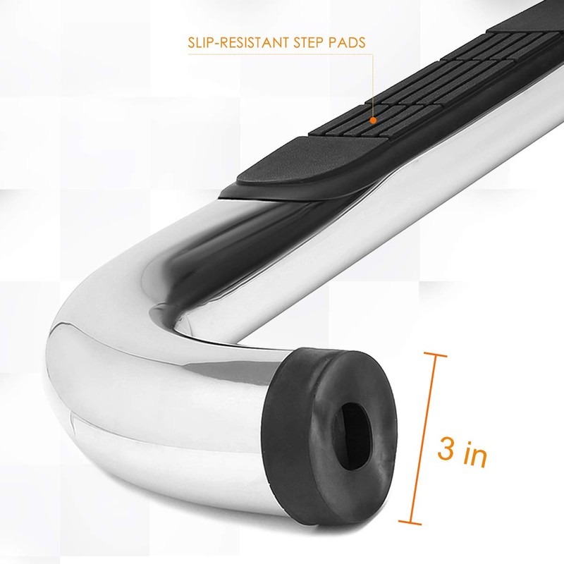 (2Pcs) 3 Inch Chrome Stainless Round Nerf Step Bars Side Steps Compatible with Ford Superduty Standard/Reg Cab 99-16