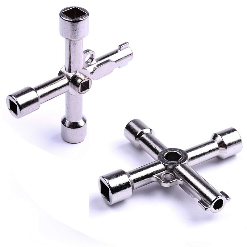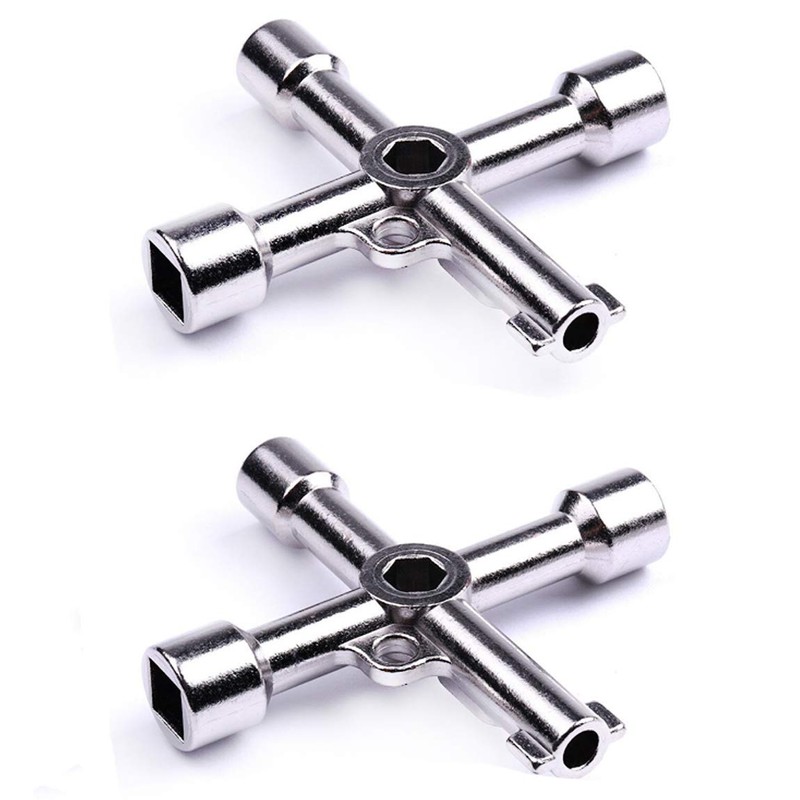 Features: It can be hang on the key ring for easy carry Made of high quality stainless steel material, durable to use 4 different keys, can open the toolbox doors, electric doors, especially suitable for the doors and windows of public places International generic key, no geographical restrictions, it can open so long as accord with the size and shape It is Multifunction, it can also be the practical wrench, to turning the screw Specification: Length: 7cm Material: Stainless steel Color: Silver 4 way Plumbing and Utility Key Includes: 15/64 inch female square key, 5/16 inch female square key, 3/8 inch (side dimension) female triangle key, and a double sided skeleton key Weight: 61g Package Included: 2 x Multifunction Cross Key
