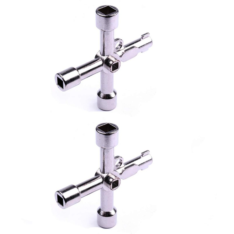 2pcs 4 in 1 Alloy Triangle/square 4 Way Service Utility Cross Triangle/square Keys for Train Electrical Elevator Cabinet Valve (2pcs silver key)