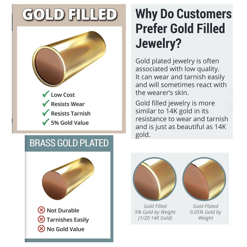 - ✦ 14K gold filled products have inherent value in 5% of its weight being 14K gold, and 100 times more gold than the gold-plated products; ✦ Safe jewelry and craft making component