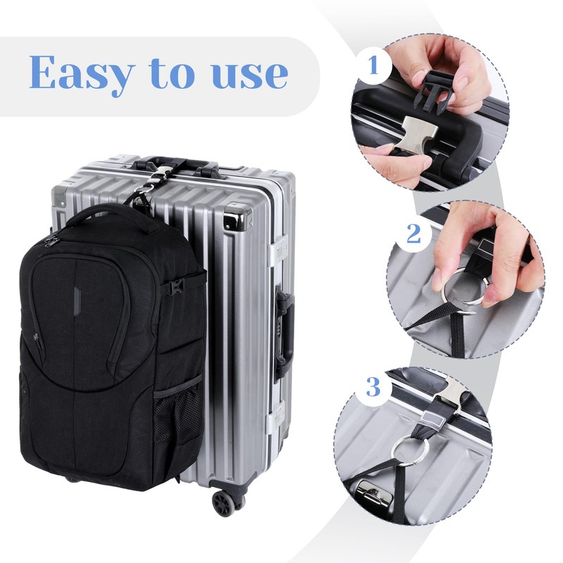 • Versatile and Practical: The adjustable suitcase belt strap allows you to secure various items like jackets, scarves, and small accessories to your luggage. A perfect companion for travelers, hikers, and outdoor enthusiasts.