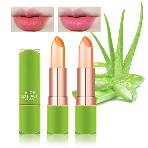 2PCS Aloe Vera Color Changing Moisturizing Lipstick for Women, Magic Temperature Color Change Lipstick Lip Blam Gloss Makeup Gift Set, Long Lasting Nourishing Tinted PH Lip Balm Moisturizer C