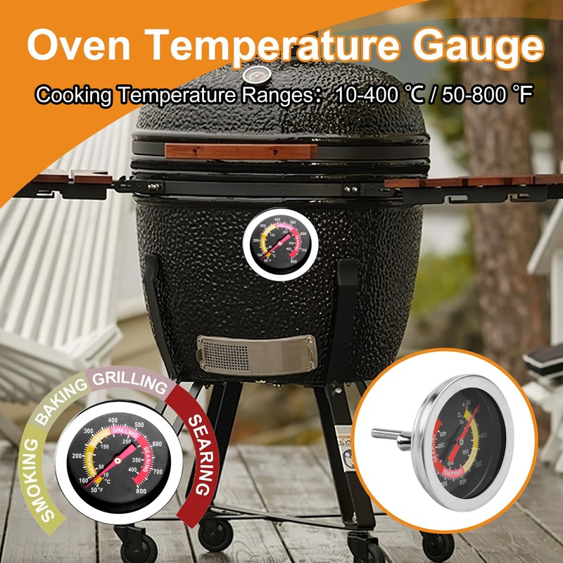 - Reliable Stainless Steel Construction:BBQ temperature gauge Crafted from high-quality stainless steel, this Pizza oven thermometer offers corrosion resistance, accurate bi-metallic readings, and long-term usability. Pizza oven door thermometer included parts resist heat damage, making them ideal for high-temperature grilling environments.