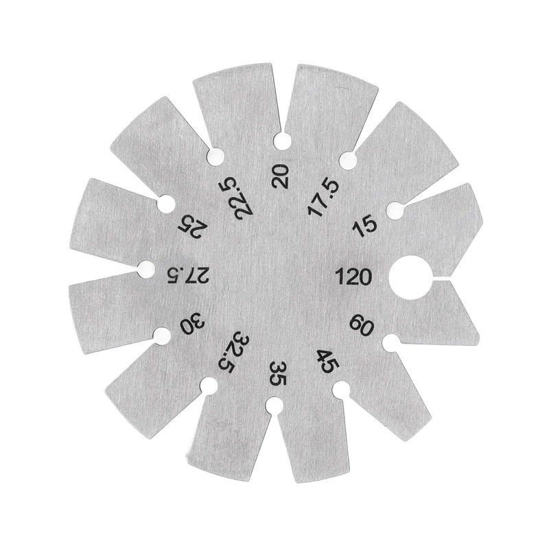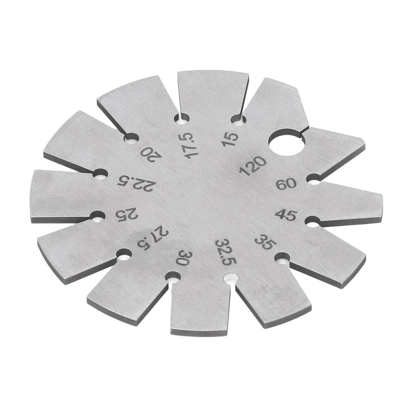 - VERSATILE: This angle gauge can measure 12 common angles, including 15°, 17.5°, 20°, 22.5°, 25°, 27.5°, 30°, .5°, 35°, 45°, 60°, and 120°, making it suitable for a wide range of applications.