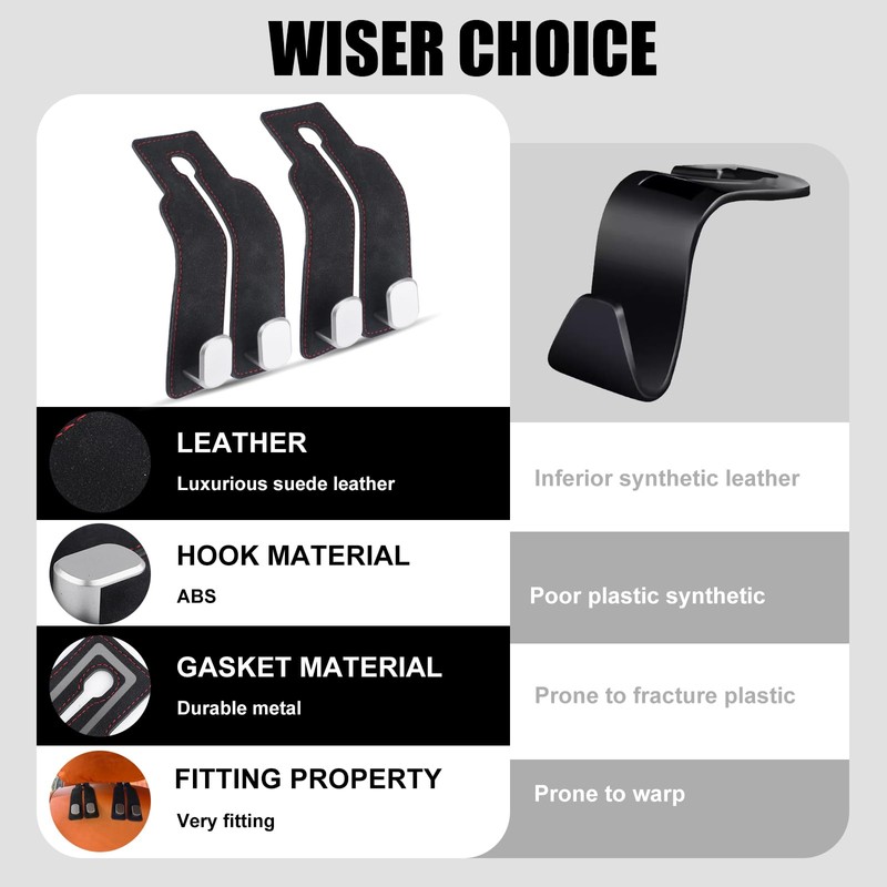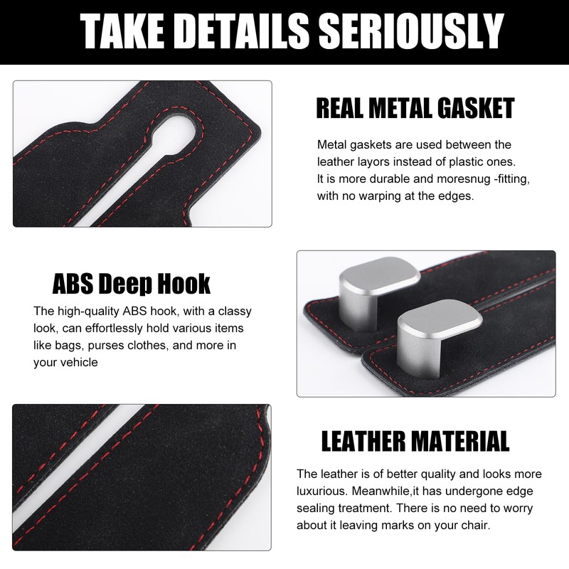 - Premium Quality: Car seat back storage hook crafted from premium leather and high-strength ABS hooks, these car headrest hooks are tough, wear-resistant, and built to last, offering strong load-bearing capacity for added storage.