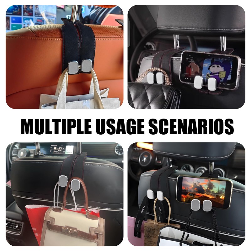 - Package Includes:You will receive 2pcs black car hooks for headrest,adjustable hooks fit all car seat types, making them an ideal accessory for long trips and daily commutes.