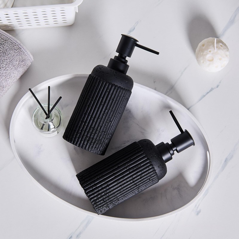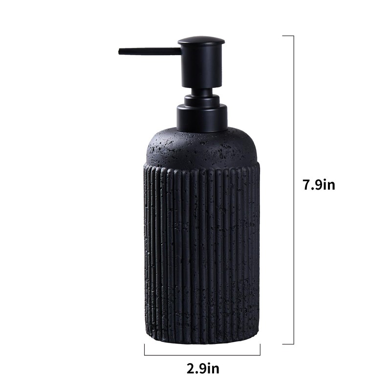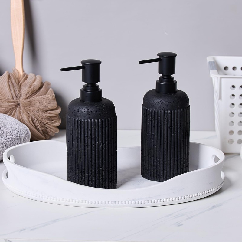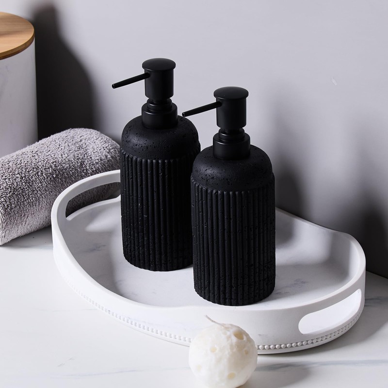 2Pcs Black Natural Travertine Textures Hand Soap Dispenser Set, Small Bathroom Countertop Resin Liquid Soap Dispensers, Kitchen Dish Wash Soap Dispensers,Refillable Dispenser with Vertical Stripe
