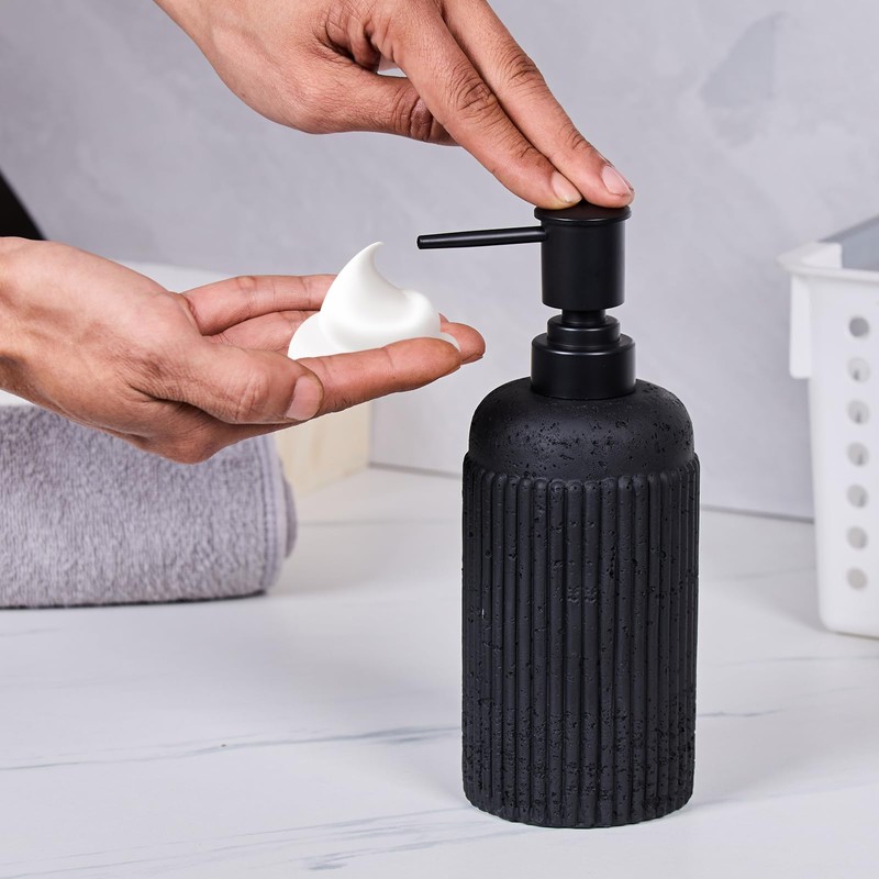 - Hand Soap Dispenser Set: A generous amount of soap, lotion, hand soap and dish soap. Looks elegant in pairs. Lovely way to dress up your bathroom, kitchen or office etc.