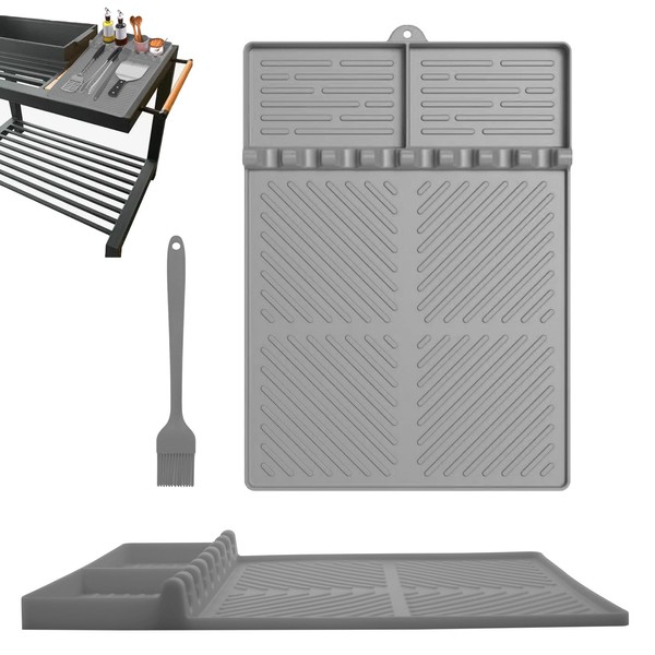 - MULTI-FUNCTION UPGRADE DESIGN: Our upgraded griddle silicone mat adopts an unspeakable design, which can withstand the test of time to ensure long service life. It is large enough to provide sufficient space to store your tableware, and 8 slots separate them when multi -tasking processing. The design of non -slip silicone material and irregular bumps and anti -sliding texture can prevent moving or sliding during use. The raised edge can prevent water or soup from overflowing and keep the barbecue desktop clean.