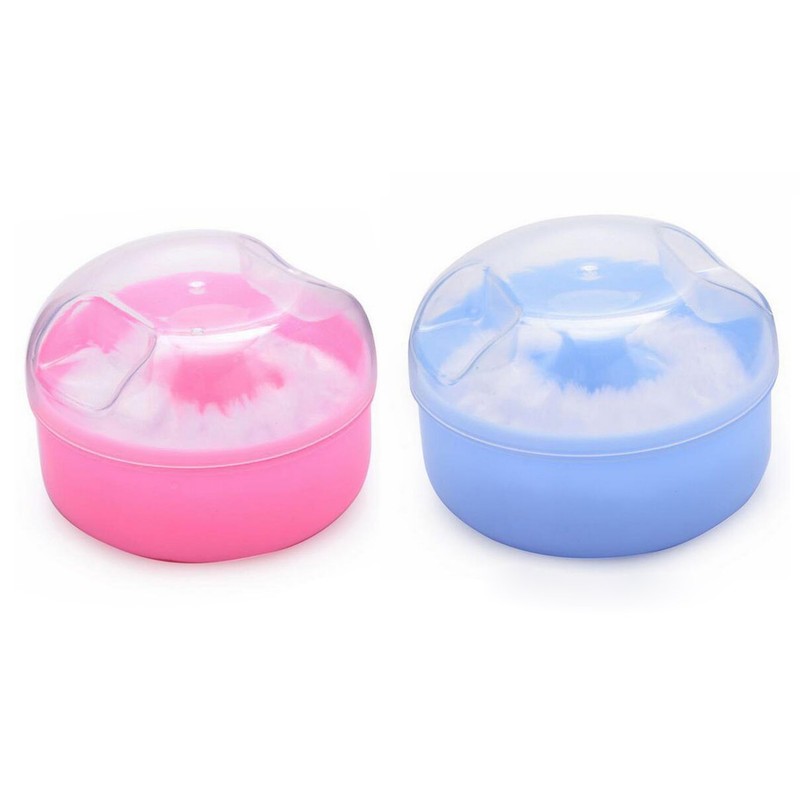 2PCS(Blue + Pink) Plastic Empty Portable Refill Baby Toddler Skin Care After-bath Loose Powder Case Face Body Talcum Make-up Storage Holder Container Dispenser with Soft Sponge Puff