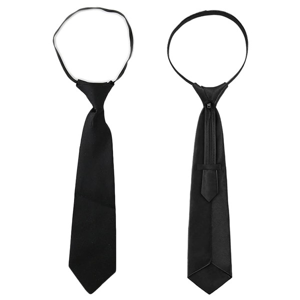 2PCS Boys Pre-tied Adjustable Ties Youth Pre-tied Neckties Adjustable Neck Strap Tie for Formal Casual Graduation School Uniform (Black)