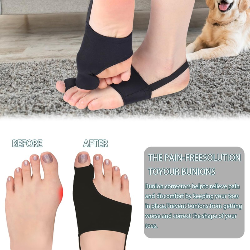 2PCS Bunion Correctors for Women & Men, Adjustable Toe Spacer Bunion Splint, Non-Surgical Hallux Valgus Relief, Breathable Day & Night Support (Black, Large)