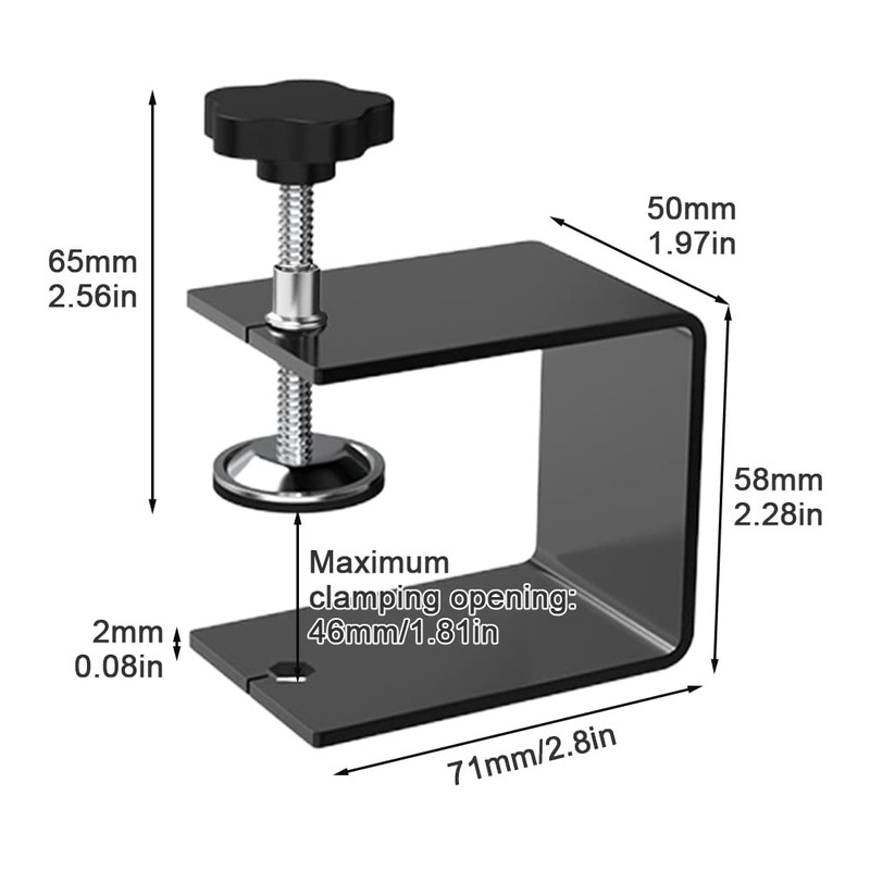 Clamp size(length x width x height x thickness): About 71 x 50 x 58 x 2mm/2.8 x 1.97 x 2.28 x 0.08inch