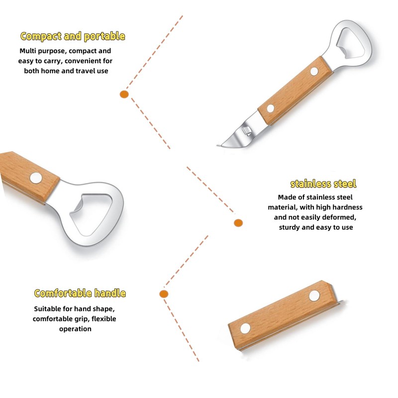 - Dual Functionality: The bottle opener adopts a double headed design, with one side used for standard bottle caps and the other side used as a prying tool. Stored together with kitchen tools, it has a small space, short search time, and is more convenient.