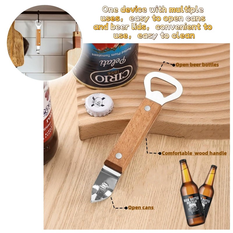 - Premium Materials: Made of quality stainless steel and birch wood, the can opener tapper is sturdy and reliable, not easy to rust, break or deform, smooth to touch, won't scratch your hands, can be kept and applied for a long time