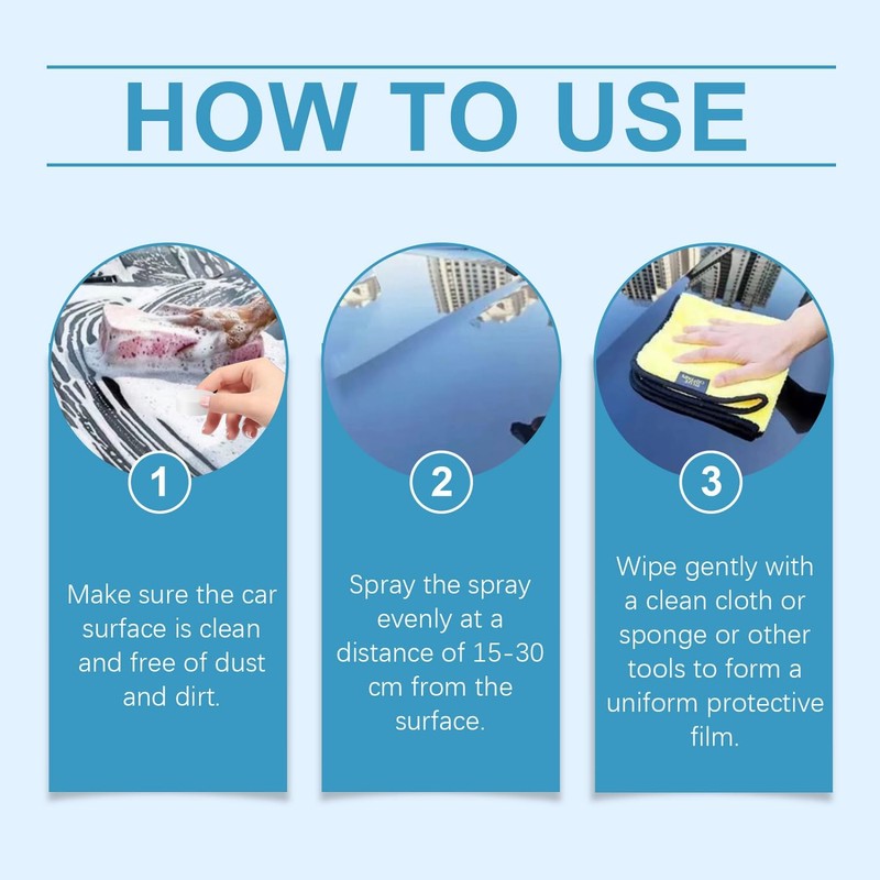 - Quick Effect Coating Agent : Car Coating Agent can repair unwanted scratches, scuff, and swirls while forming a paint protection spray layer and restoring the shine . And makes your car oil-proof, hydrophobic, and scratch-resistant.