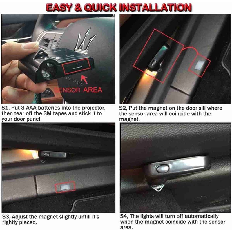 - (Magnet Sensor Design) Fit Blessed car door light logo can be installed in both left and right doors. It will light up when you open the door and turn off once you close the door.Specially designed for auto modification fancier, it will make your car mor outstanding and eye- catching.