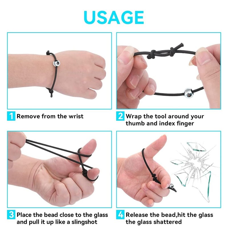 Easy to use: our wristband car windscreen breaker is very easy to use, just remove the bracelet, place it around your thumb and index finger, pull the projectile back and release it. While it looks harmless, it breaks glass extremely effectively.