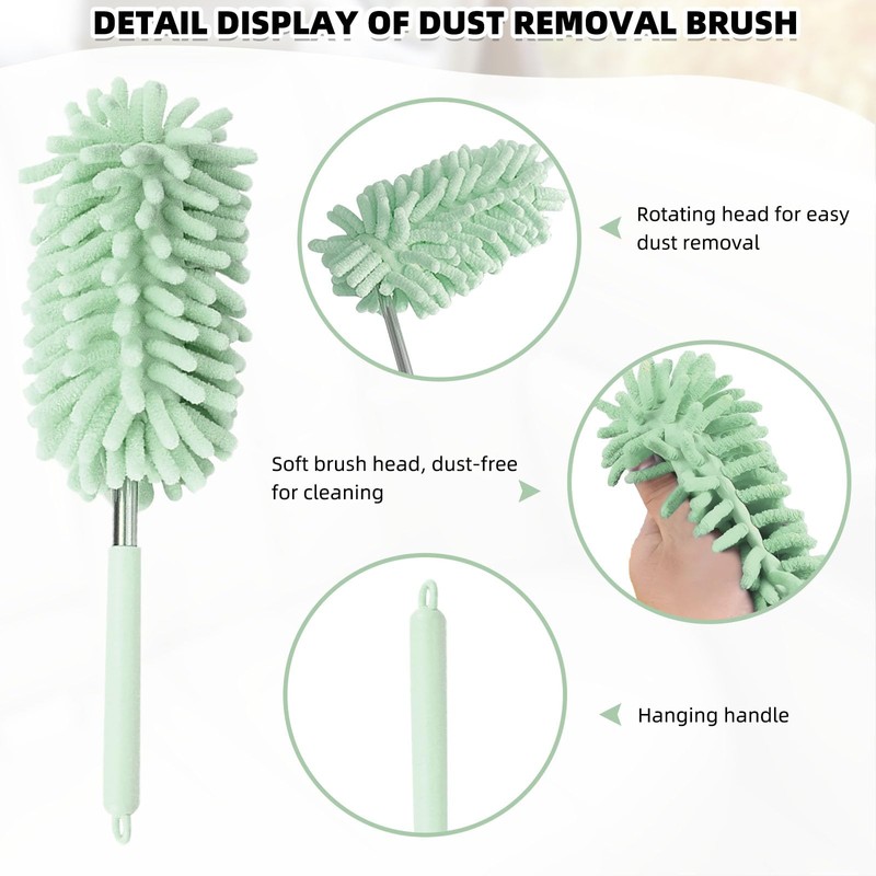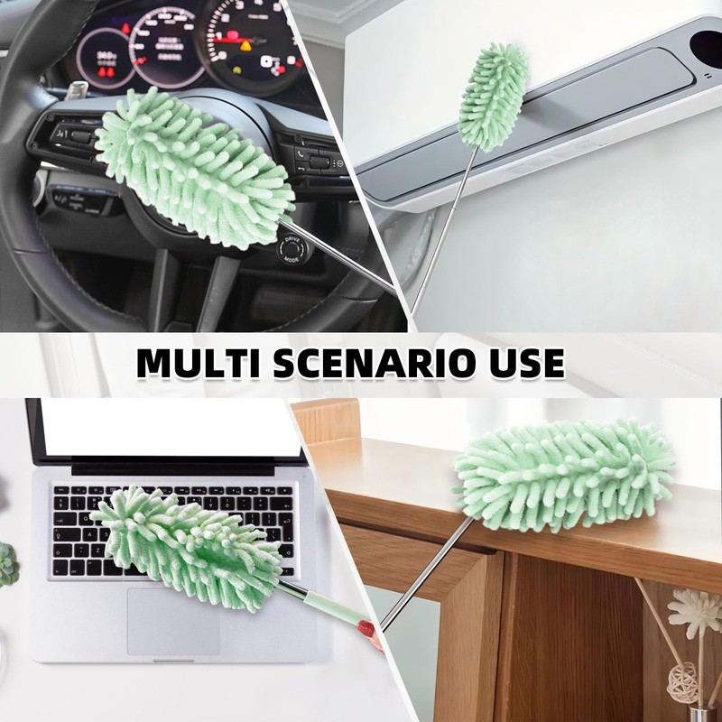 - High Quality: Stainless steel telescopic pole, does not easily break and rust, the brush head part well made of anti static chenille yarn