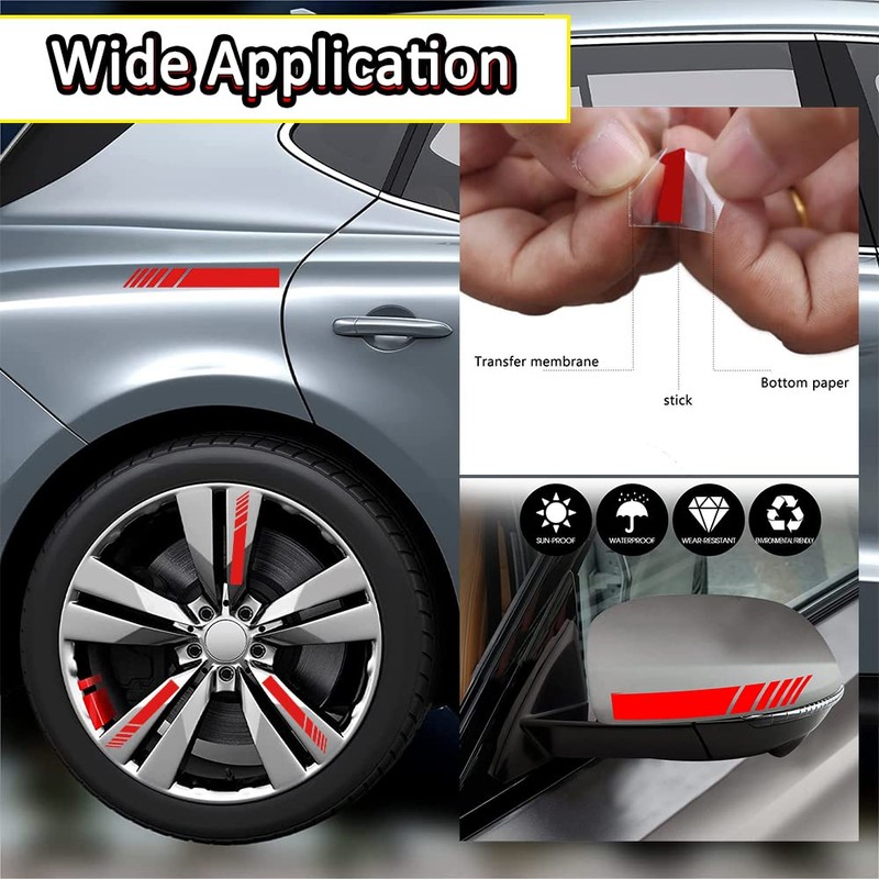 - [Beauty and warning]: Reflective materials will reflect light when there is light at night, which is very dazzling and can play a warning role. Car mirror stickers can not only have the function of decorative beauty, make your car look more fashionable, but also play a warning role to achieve safe driving.