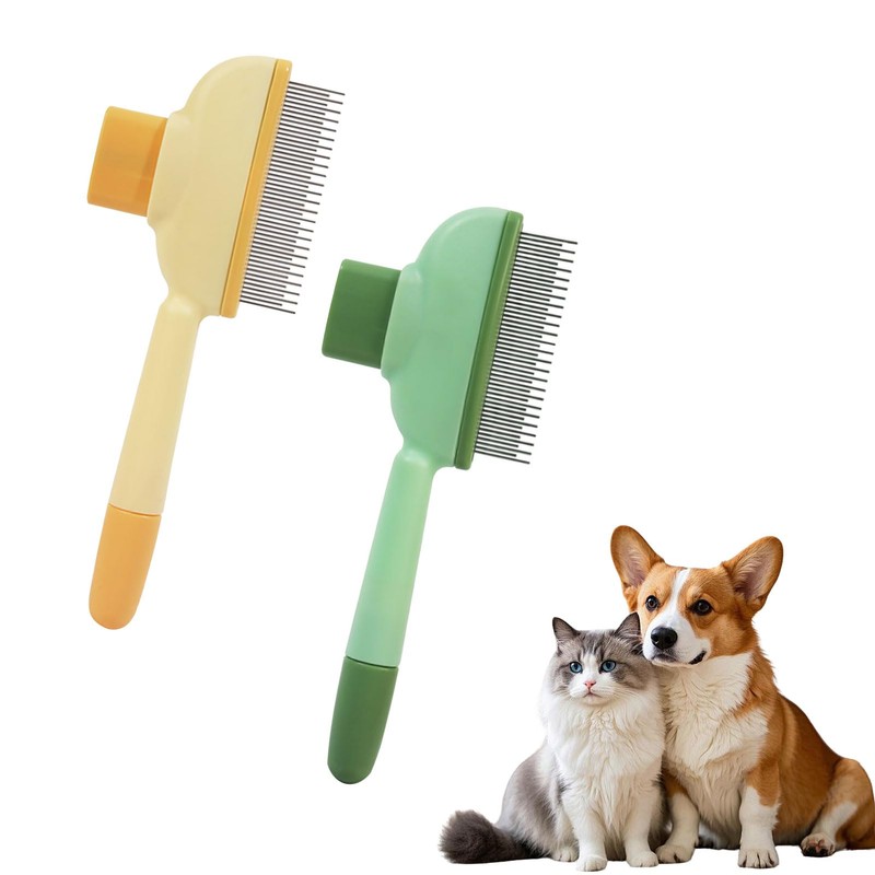 2Pcs Cat Brush, Multi-function Grooming Brushs Removes Fur with Release Button, Self-Cleaning Pet Flea Comb Grooming Brush for Massaging and Cleaning Hairs