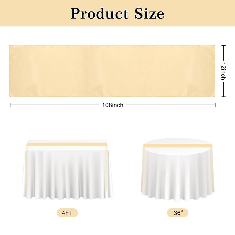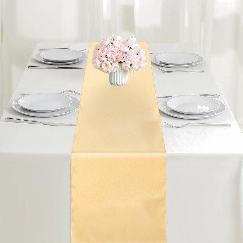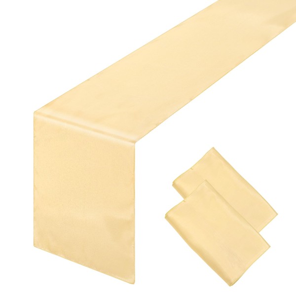 2PCS Champagne Satin Table Runner 12 x 108 Inch Satin Silk Table Runners Smooth Table Runner for Wedding Christmas Birthday Graduations Party Table Decor