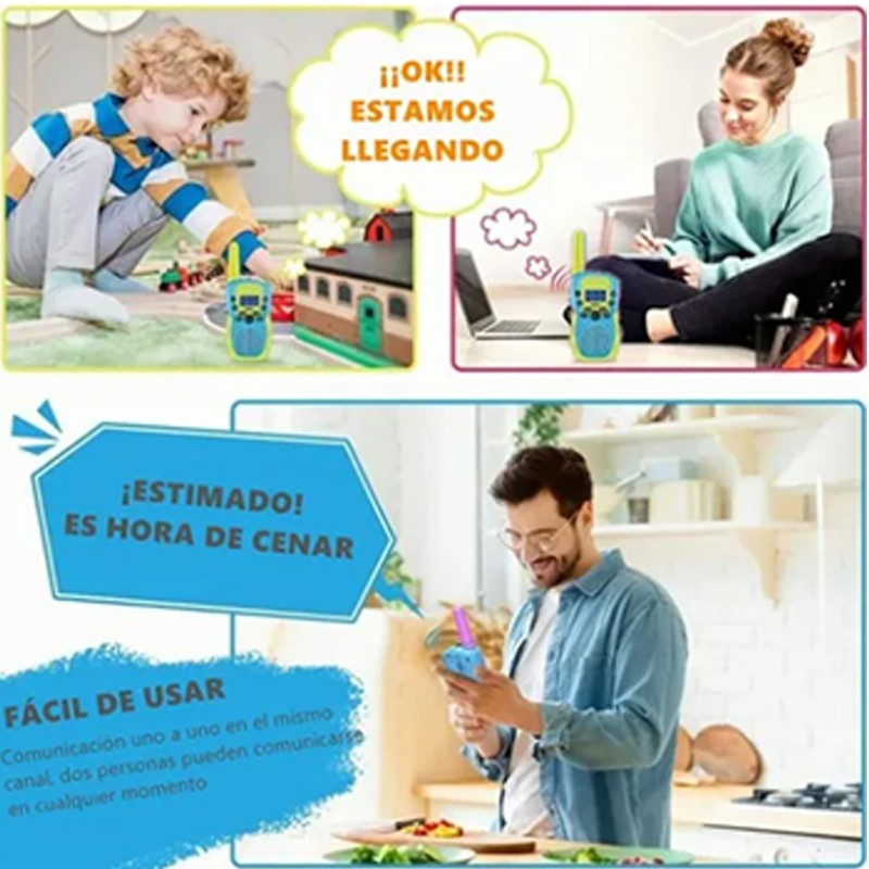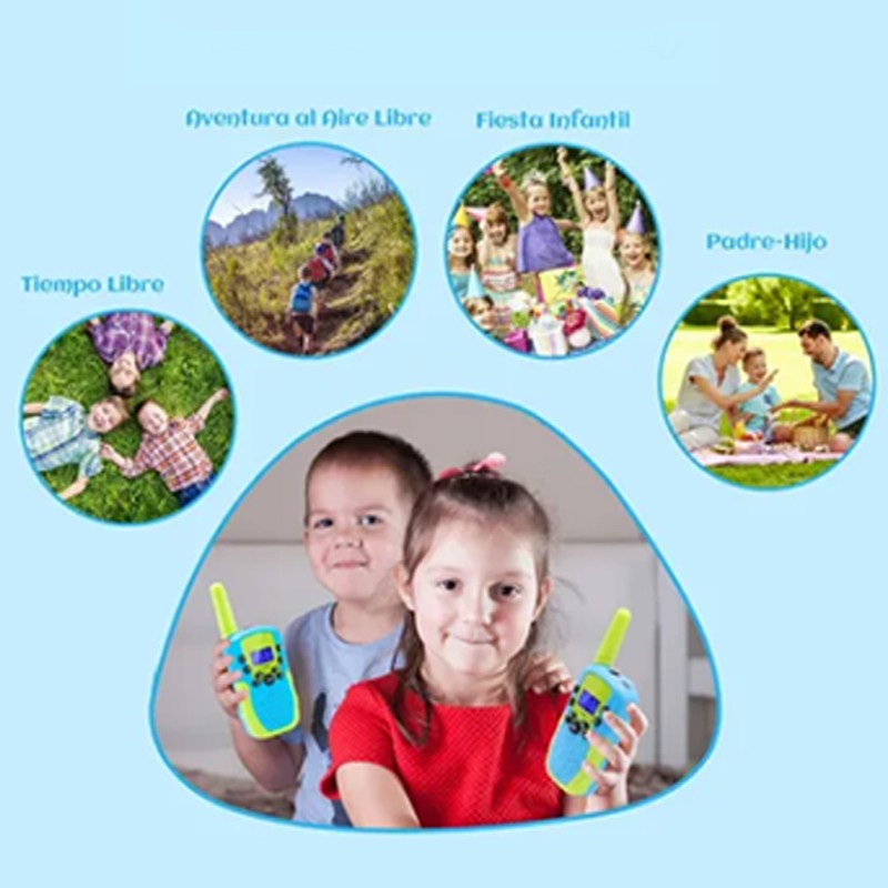 1、Parent Child Interactive Walkie Talkie: A new play toy for children, encouraging children to engage in outdoor games and use their imagination, away from cell phones and tablet games. 2、Cute Appearance: Our kids walkie talkie uses a combination of blue and green, which is very clear and recognizable, and it is easy to attract your child's attention and make them like it. 3、Long Distance Play: With a communication distance of about 3km, so this kids walkie talkie can support your child's long distance barrier free play. 4、Multi functional: Our walkie talkies are equipped with a keylock function so you don't worry about children changing channels by mistake. The backlit LCD screen ensures that children can see the screen clearly even in direct sunlight or darkness. Built in LED flashlight for outdoor night adventures and emergencies. 5、Applicable Scenarios: Suitable for children to play while better dialogue with parents; suitable for shopping in the mall to prevent children from getting lost; suitable for parents and children to play with each other to enhance parent child relationship.