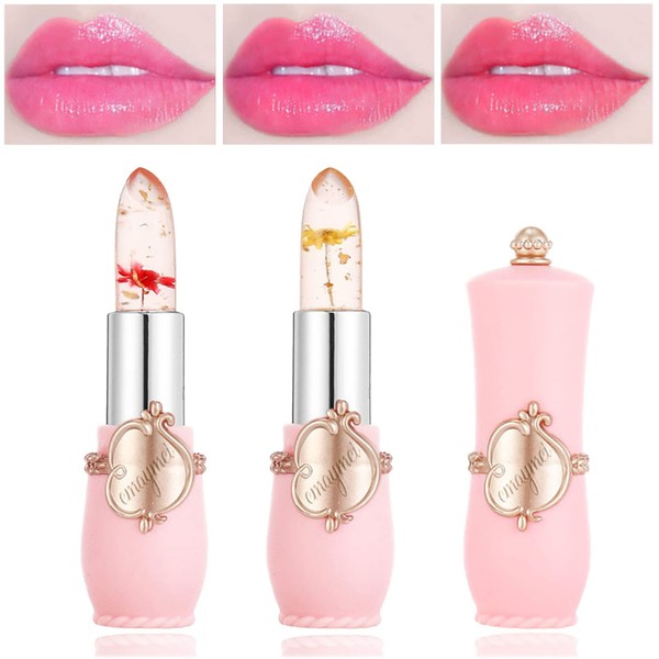 2Pcs Clear Crystal Flower Jelly Lipstick,PH Magic Temperature Color Changing Lipstick,Lip Gloss,Long Wear Nutritious Tinted Lip Balm,Moisturizing Lip Stick Makeup Set (Set B)