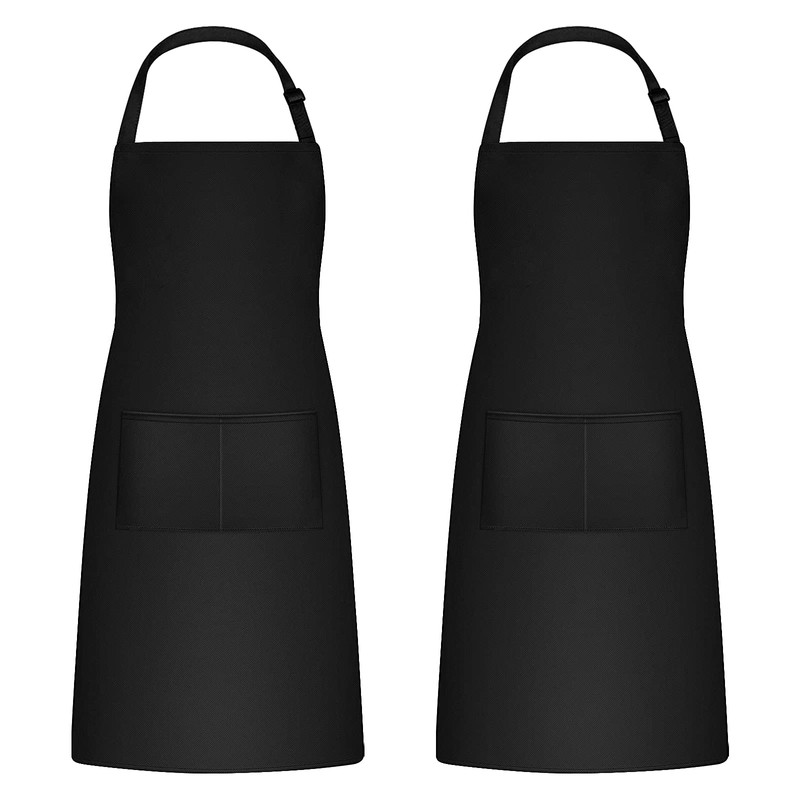 • 2pcs Kitchen Aprons - Made of 100% polyester fiber, the size of apron is 64 * 79 cm, quality fabrics make aprons more durable and it always can keep in shape after being washed.