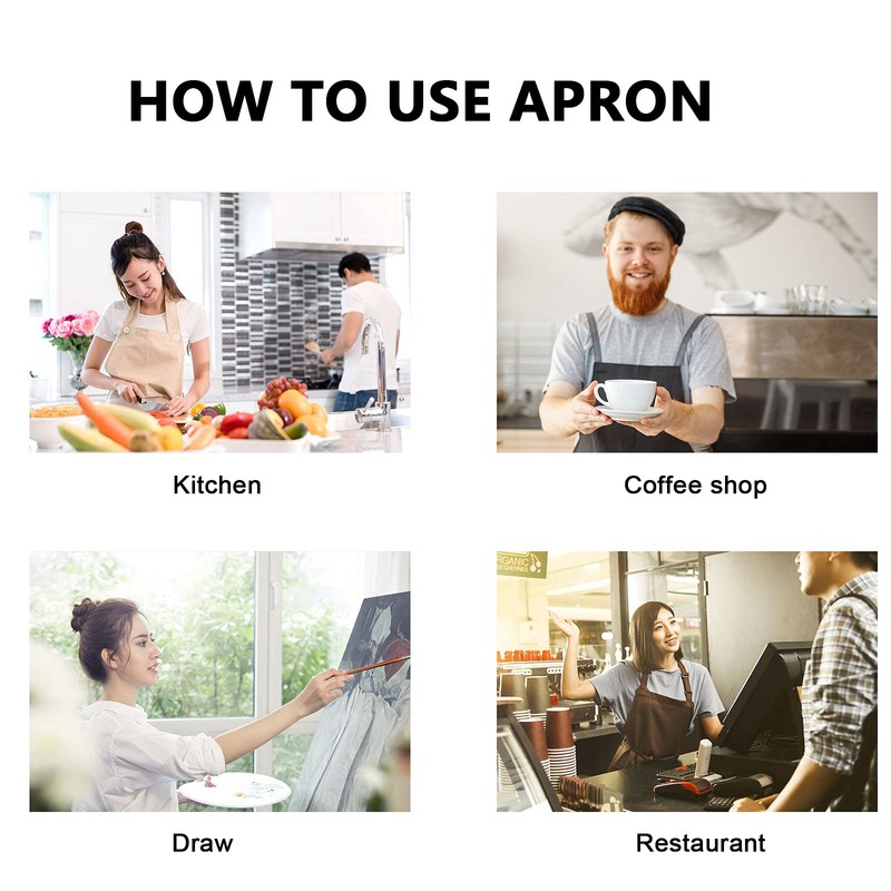 • Waterproof Apron - The apron is coated with waterproof fabrics, it can protect effectively clothes when cooking, doing housework or painting, a good helper for chef and house keeping.