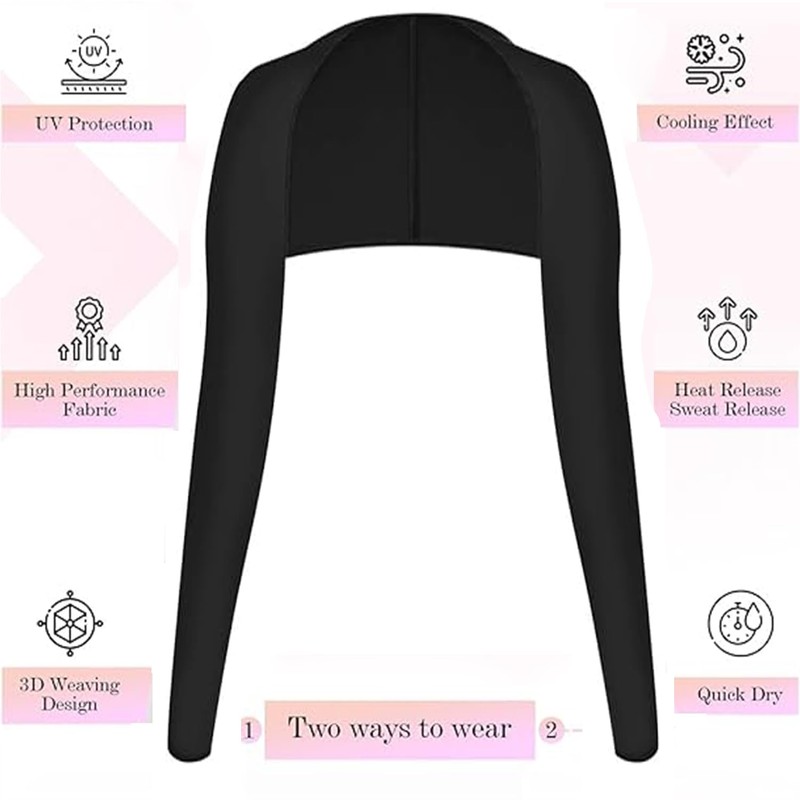 - 【One-Piece Convenience】: The innovative shawl and sleeve combo slips on effortlessly,eliminating the hassle of separate pieces.Ideal for quick outings,workouts,or whenever you need instant sun protection.