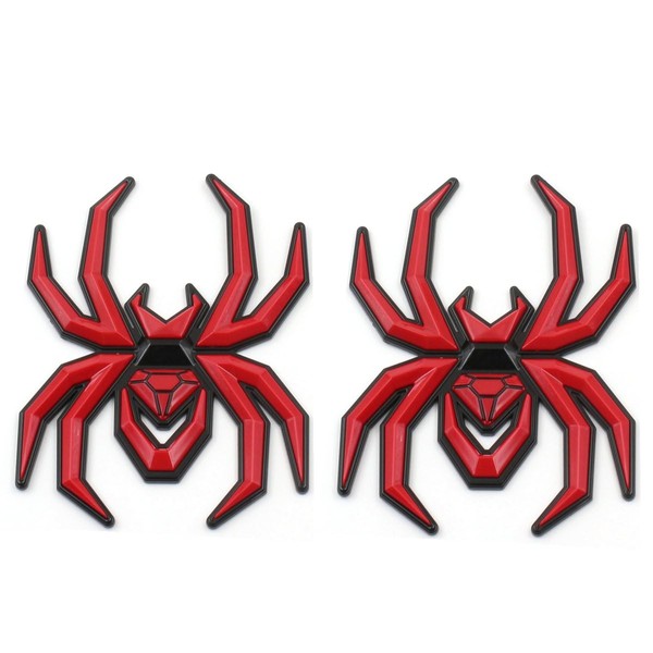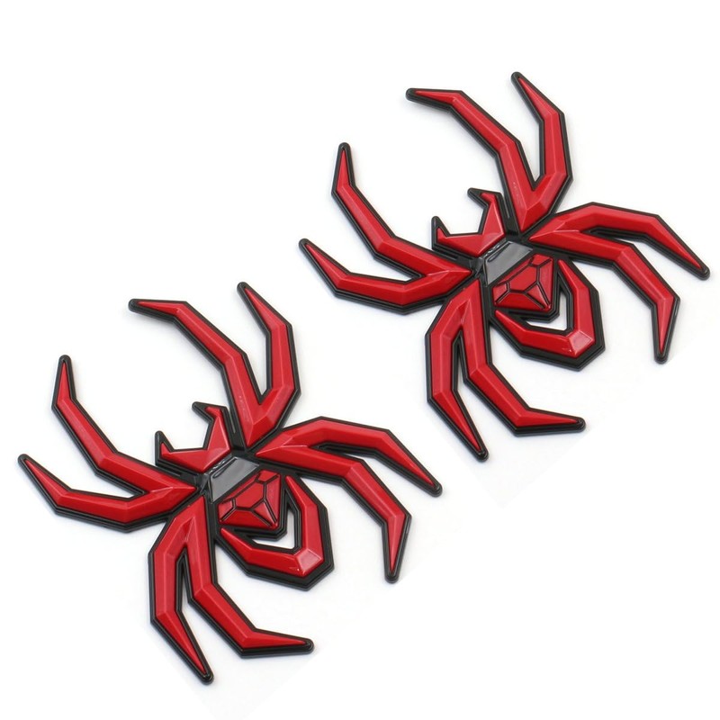2Pcs Custom Spider Emblems Left Right Car Badge for Universal Car Body Motorcycle SUV Widow Door Edition Decoration (Red Black)