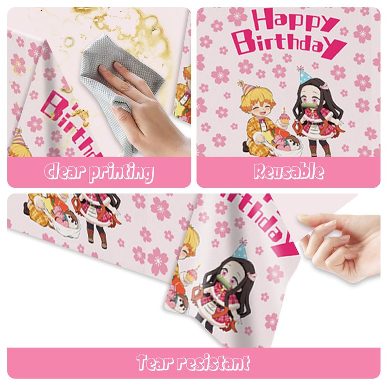 2Pcs Demon Tablecloth Disposable Tablecover Slayer Birthday Party Supplies an...