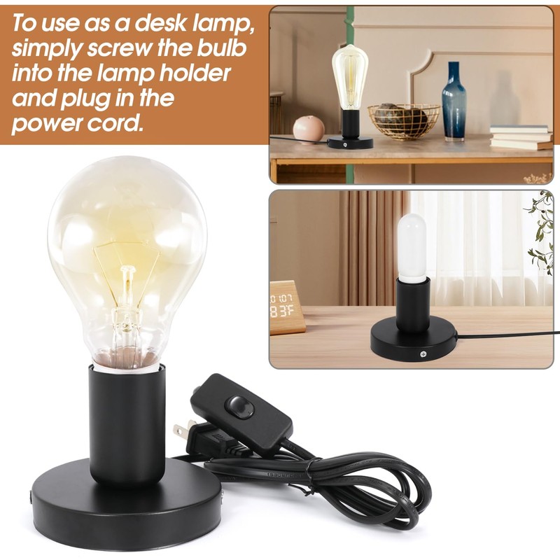 2Pcs Desktop Lamp Base Light Base Socket Screw Light Bulb Holder Base with 6 Feet Cord on Off Switch Plug for Holding Bulb for Your Night Light