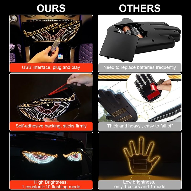 - 【Multi-Purpose Devil Eyes Light For Cars】This led windshield eyes light is not only used in the car, it can be used as a decorative ambient light for KTV, bar, store bedroom, living room, etc. Add some fun to your daily life with these dynamic lights. Compact packaging and lightweight design make them easy to carry and ideal for personalizing your vehicle.