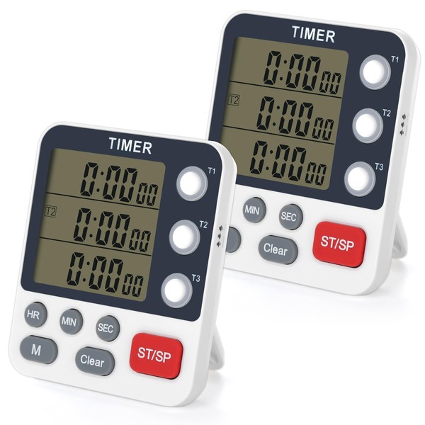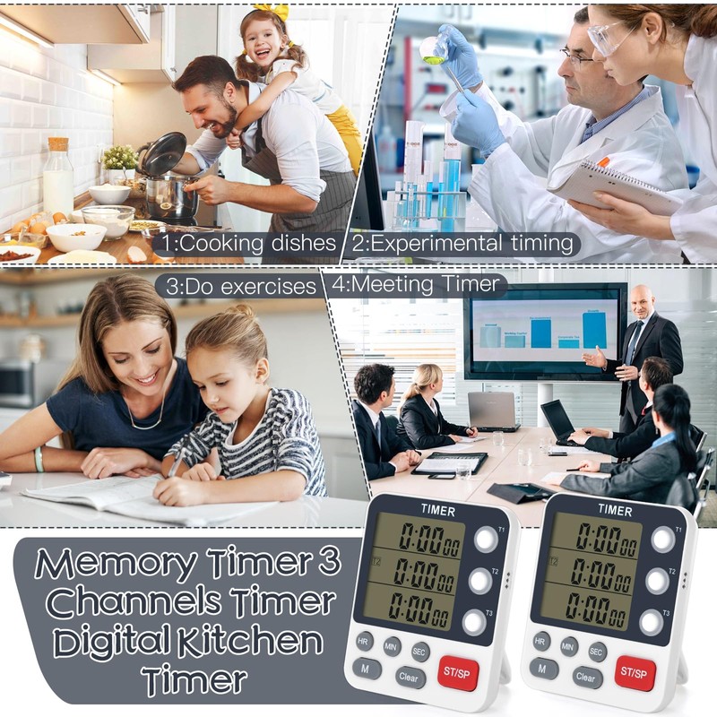 - Kitchen timer digital: This multi timer can inddependently run three timers,perfectly meeting your needs for timing multipe dishes ,countdown stopwatch timer for cooking the timing time can reach 99 hours, 59 minutes, and 59 seconds,suitable for various purposes such as cooking, exercise, laboratory, controlling game time, children's activities, and meetings