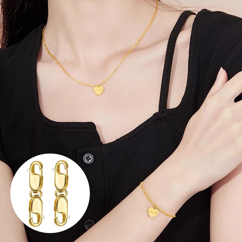 2pcs Double Lobster Clasp Extender, Gold Plated 925 Sterling Silver Necklace Extender Clasp Jewelry Lobster Clasp Double Claw Connector for Necklace Bracelet DIY Jewelry Making (Gold)