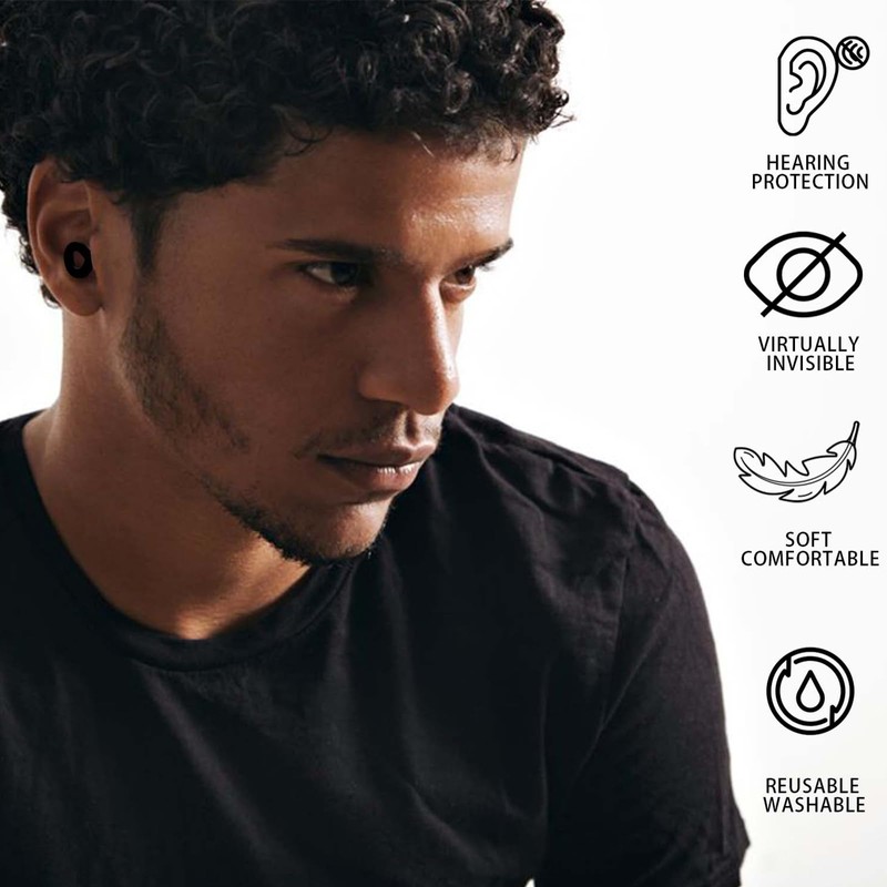 2PCS Ear Plugs, 33dB Hearing Protection Noise Canceling Sleep Earbuds, Reusable Silicone Earplugs for Concerts, Deep Concentration, Travel, with Earplug Storage Bag and Earplug Heads-Black