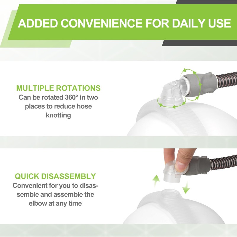 - 360-Degree Swivel: The elbow features 2 rotation positions for greater flexibility, reducing hose tension and allowing for more comfortable turn over at night.