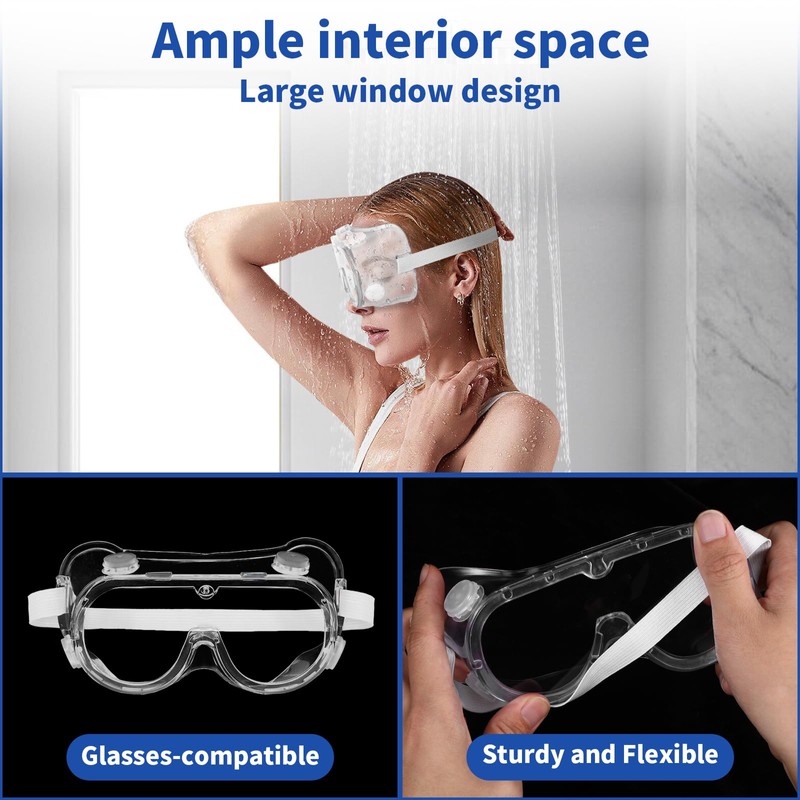 - EYEWEAR COMPATIBILITY: The shower shield also takes care of the need for nearsighted glasses, the eye goggles are large enough to accommodate nearsighted glasses, and the eye protector allows nearsighted people to see clearly while protecting their eyes