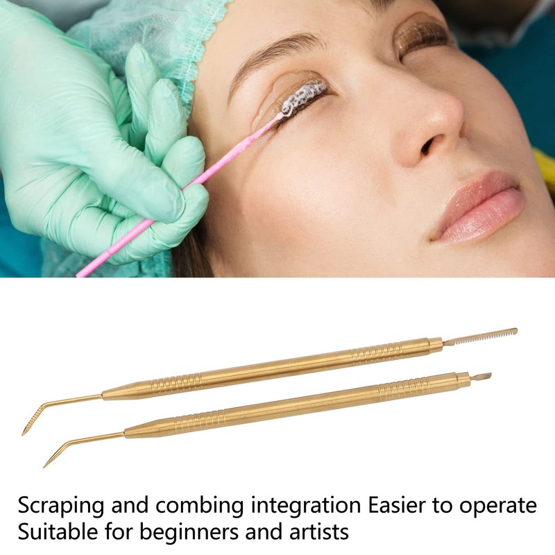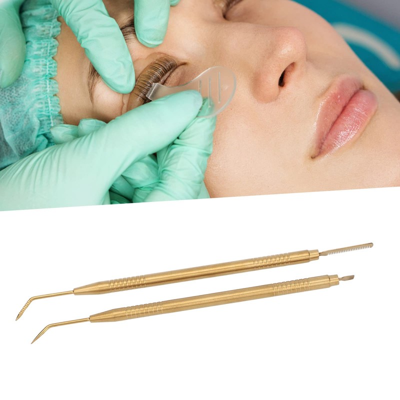 2pcs Eyelash Lift Separator Tools Double Headed Stainless Steel Lash Separation Rod with Comb (Gold)