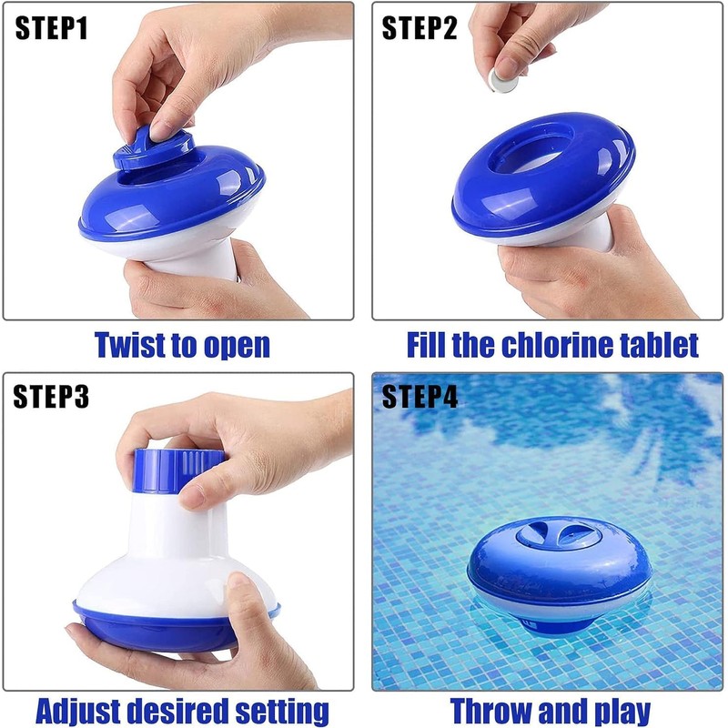 - 👌 EASY TO USE: Simply open the lid, add slow-dissolving chlorine or chlorine particles, adjust the outlet, and place it in the pool. Automatically adjusts water level when the pump stops working.