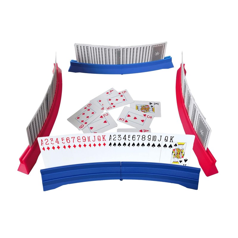 - The playing card holder features two-tier slots that can easily hold over 50 playing cards for organization and visibility, making it easy to check your playing cards. The grooves that hold the cards are wide enough that you can overlap them, which is sure to come in handy when you're playing any card game.